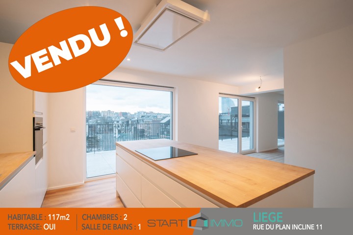 START-IMMO a le plaisir de vous présenter ce magnifique penthouse entièrement neuf de 117m² au dernier étage de la toute nouvelle résidence "Plan Incliné" sis rue du plan incliné 11/13 à Liège. Un appartement unique en son genre mêlant élégance et confort en plein cœur de Liège. Situé au dernier étage (4ème), cet appartement de deux chambres se distingue par son agencement moderne et fonctionnel. Il se compose , de deux belles chambres, une salle de bain (douche et bain), WC indépendant, espace buanderie, cuisine ouverte sur un grand salon/salle à manger qui se prolonge vers l’extérieur grâce à une terrasse exceptionnelle. Ce bien séduit par son caractère atypique, son calme, et son confort contemporain, le tout dans un environnement privilégié à deux pas de la gare des Guillemins, des commerces et du centre-ville. Un appartement idéal pour ceux qui recherchent un logement spacieux, lumineux et fonctionnel mais également parfait pour un investissement. Pour plus d’informations ou organiser une visite, contactez START-IMMO dès aujourd’hui via le 0479 28 96 67 - 0475 20 13 90 ou via info@start-immo.be